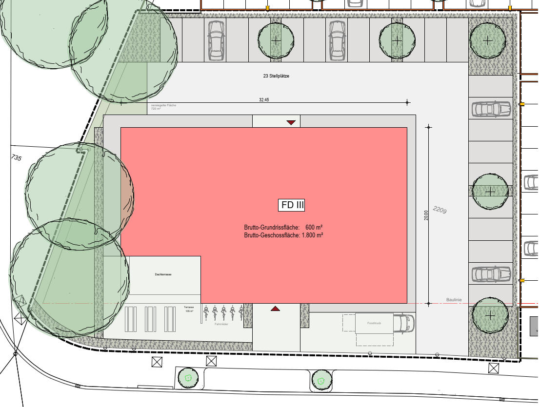 | Werden Sie Mieter in unserem neuesten Projekt! Wir errichten das abgebildete Büro- und Geschäftsgebäude in Dortmund Hohenbuschei ab dem 4 Quartal 2023 nach Ihren Vorstellungen, Wünschen und Bedürfnissen! Die dargestellten Grundrisse sind exemplarisch und können in Abstimmung mit den weiteren Mietern entsprechend Ihrer individuellen Nutzung angepasst werden. Nach Errichtung verfügt unser Objekt über insgesamt ca. 2.015 m² Mietfläche auf drei Etagen zzgl. Keller. Ob Gastronomie, Arztpraxis oder Büro, Sie entscheiden bis zum Baubeginn in Abstimmung mit uns Ihre individuelle Raumaufteilung und Ausstattung mit. Die Vermietung ist entweder Ganz, Etagenweise oder ab ca. 200 m² möglich. Ansprechpartner: Herr Stefan Rundholz RUNDHOLZ Immobilien und mehr... Oberste-Wilms-Str. 15d 44309 Dortmund |